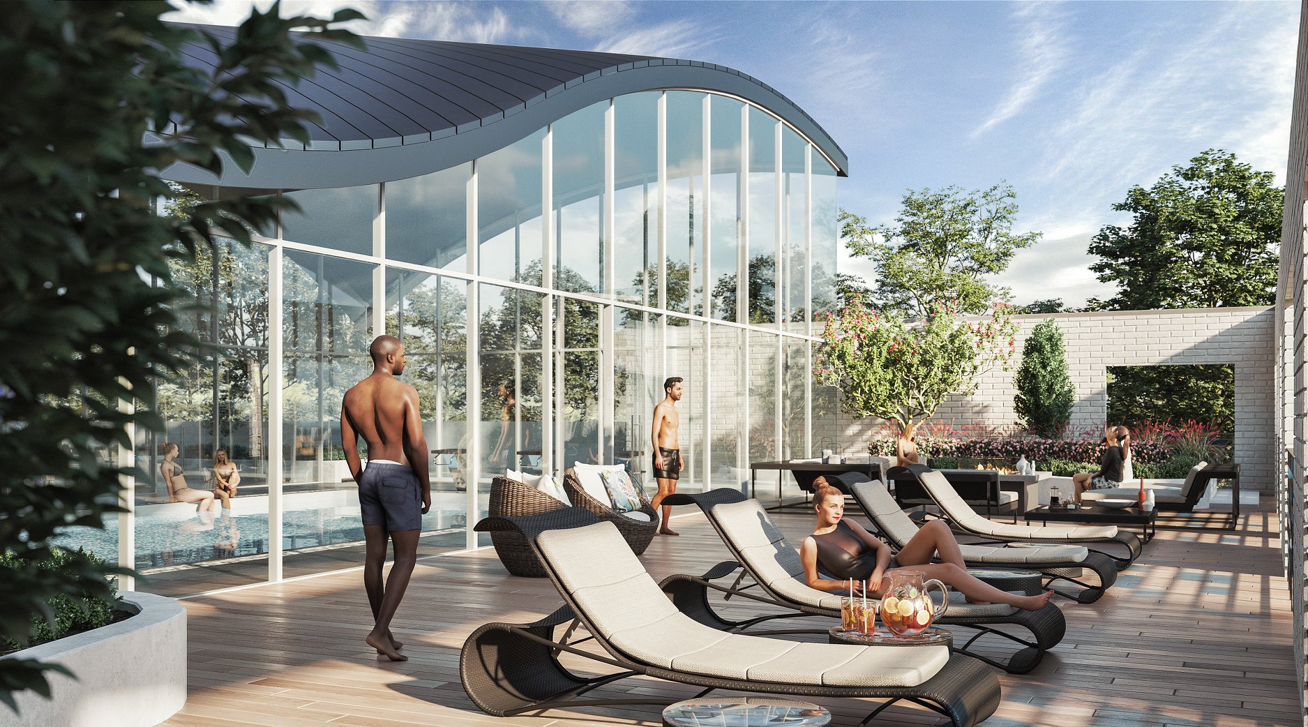 - Amenities include: virtual spin & Yoga studio, indoor swimming pool, sunbathing deck, outdoor hot tub & cinema deck, games lounge, 24/7 open work lounge, 24/7 concierge service & building security