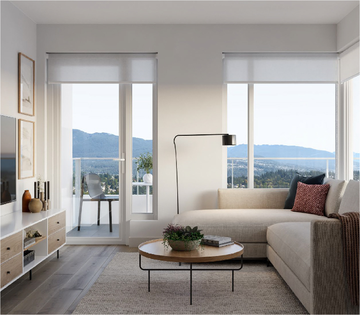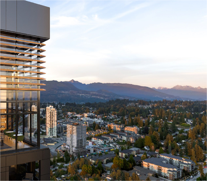 On a rising skyline of modern forms, Band is a beacon. Townline presents a landmark 45-storey tower that commands attention in vibrant West Coquitlam. Bold architecture uses sharp geometry and contrasting bands of light and dark to create a new design icon. Resort-inspired amenities offer an effortless balance of active living and tranquil stillness.