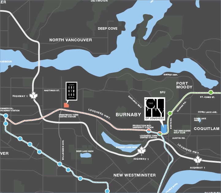 City of Lougheed is a visionary 37-acre master plan destination in Metro Vancouver’s central Burnaby community. Spanning 16 city blocks, this vibrant city centre is evolving to offer best-in-class homes, shops and services, and dining, as well as meticulously planned parks and public plazas.