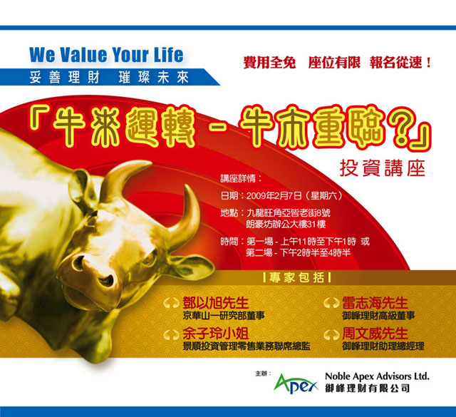 More than 600 participants joined our seminar this time. They were deeply impressed by the Q & A and lucky draw sessions and the advice of four speakers about the investment opportunities in the current trendless market. With enthusiastic responses of the audience, the seminar ended with satisfaction.