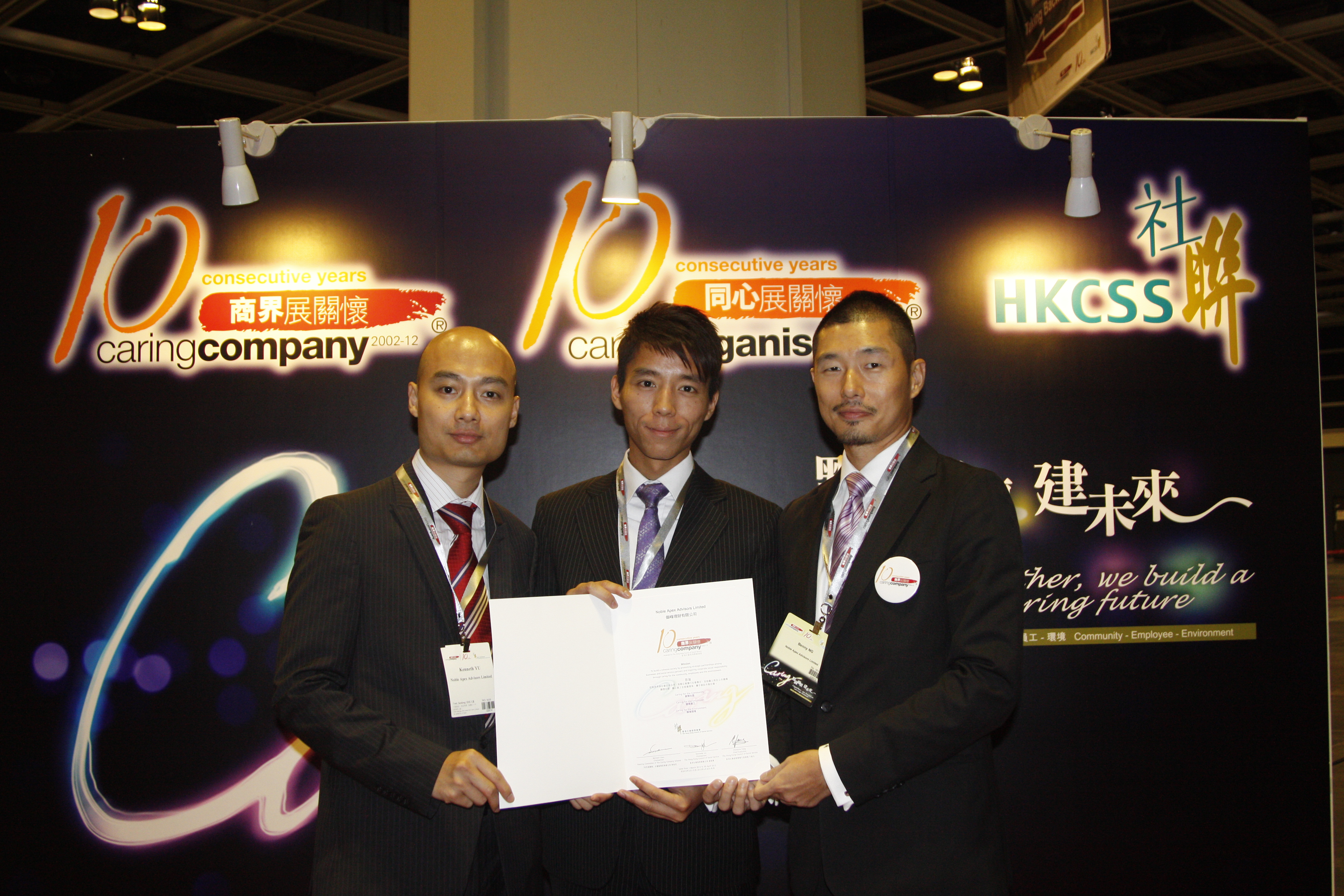 We are pleased to announce Noble Apex Advisors Ltd. was conferred the honor of "10 Consecutive Years Caring Company" by The Hong Kong Council of Social Services (HKCSS) in recognition of our commitment in Volunteering, Giving, Mentoring, Employing the Vulnerable, Caring for the Employees and Caring for the Environment for the past 10 years.