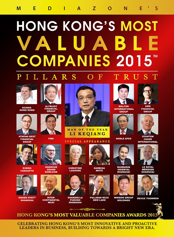 Noble Apex Advisors Ltd. is just awarded one of Hong Kong's Most Valuable Companies 2015 in January this year. The company is proud and excited to get this award from the Mediazone Group for the eighth consecutive years. Our Managing Director, Dr MF Chan, is invited as one of the figures on the magazine cover together with Premier of the State Council of the People's Republic of China Li KeQiang etc.